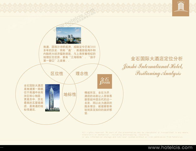 南通金石國(guó)際大酒店按國(guó)家白金五星的標(biāo)準(zhǔn)設(shè)計(jì)建造,由上海設(shè)計(jì)院美國(guó)HBA酒店聯(lián)合設(shè)計(jì)有限公司負(fù)責(zé)室內(nèi)裝潢,人和時(shí)代CRTT香港集團(tuán)(Http://www.sangsi.com.cn)設(shè)計(jì)酒店標(biāo)志VI,風(fēng)格俊朗挺拔,盡顯王者霸氣。是集餐飲、客房、康體、娛樂、高級(jí)會(huì)所、酒店式公寓等功能于一體的豪華大型酒店。除硬件設(shè)施過硬外,風(fēng)格奢華外,酒店特邀在酒店業(yè)內(nèi)享有聲譽(yù)的青島海景花園酒店管理公司進(jìn)行管理,打造“親情一家人”的服務(wù)品牌,創(chuàng)造讓客人滿意、讓客人驚喜、讓客人感動(dòng)的服務(wù)品牌三境界,讓顧客感受如家人一般的感受。