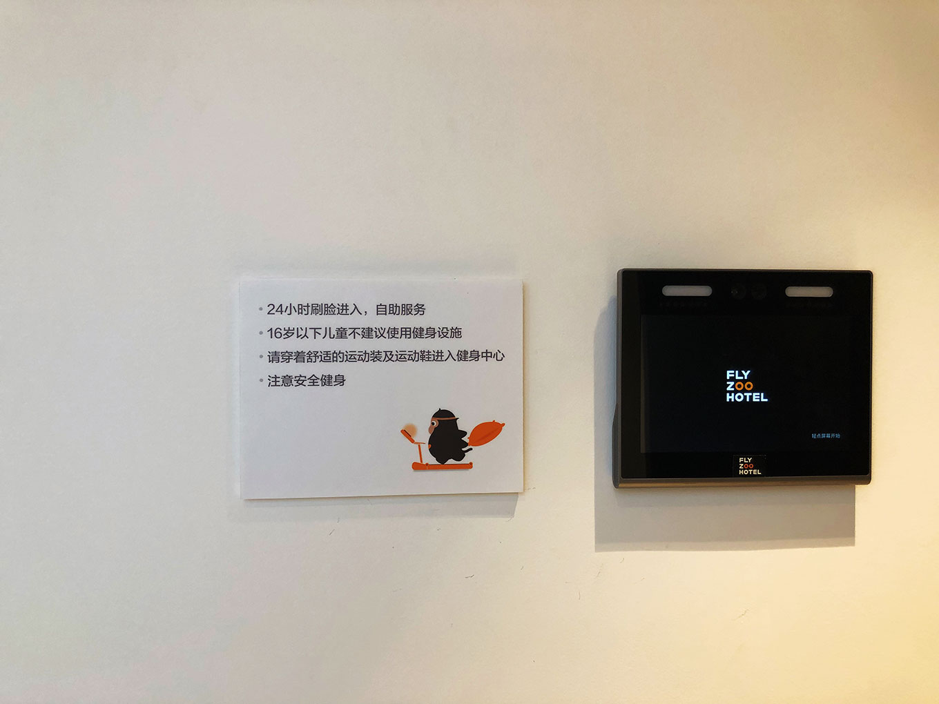在這里能感覺到進入菲住布渴酒店大堂,設(shè)計未來感十足,進入大堂即有電子顯示的標識,人和時代標識公司把阿里橙色在標識設(shè)計中的應(yīng)用,簡結(jié)的標識及立體字。并配有自助機就開始進行人臉識別。阿里方面就聲稱菲住布渴是全球第一家支持全場景刷臉的酒店。在整個入住體驗中鈦媒體也發(fā)現(xiàn),包括電梯、房間、餐廳、健身房、酒吧等多個場景內(nèi)都有人臉識別科技的應(yīng)用。