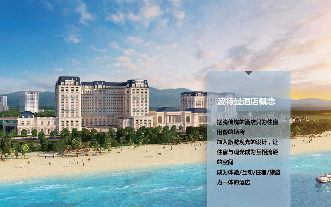 法蘭西經(jīng)典皇室風(fēng)情之濱海酒店,擺脫傳統(tǒng)的酒店只為住宿用餐的場所加入旅游觀光的設(shè)計,讓住宿與觀光成為互相流通的空間,成為體驗/互動/住宿/旅游為一體的酒店。
