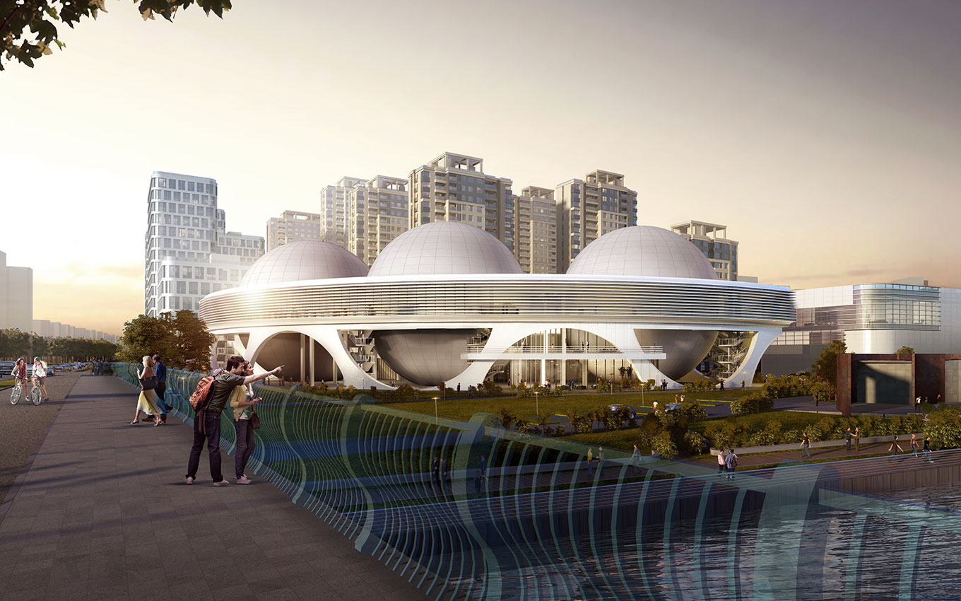 720°高科技影視體驗(yàn)館,全新的設(shè)計(jì)構(gòu)思,為上海增添了新的體驗(yàn)館,作為“城市客廳”的重彩之筆,將底層架空,使親水堤岸空間與城市空間自然銜接,最大限度將城市濱河綠地與公眾共享。
